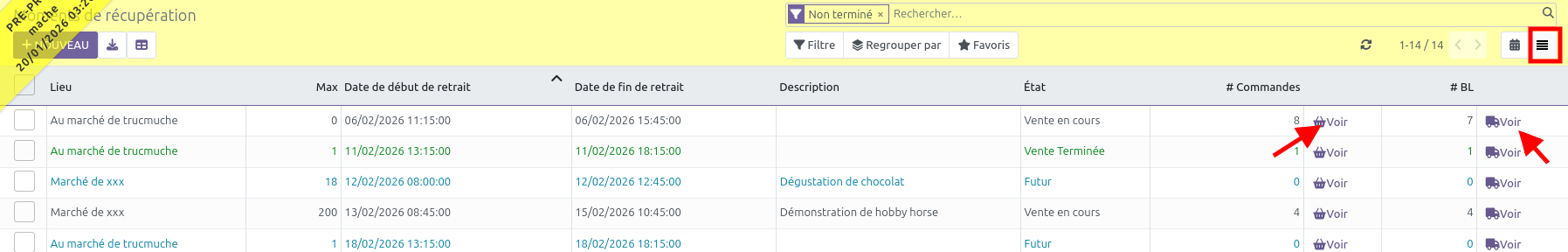 Dans Ventes >> Commandes >> Moments de récupération, se mettre en vue liste, puis cliquer sur le détail des bons de commande avec le bouton