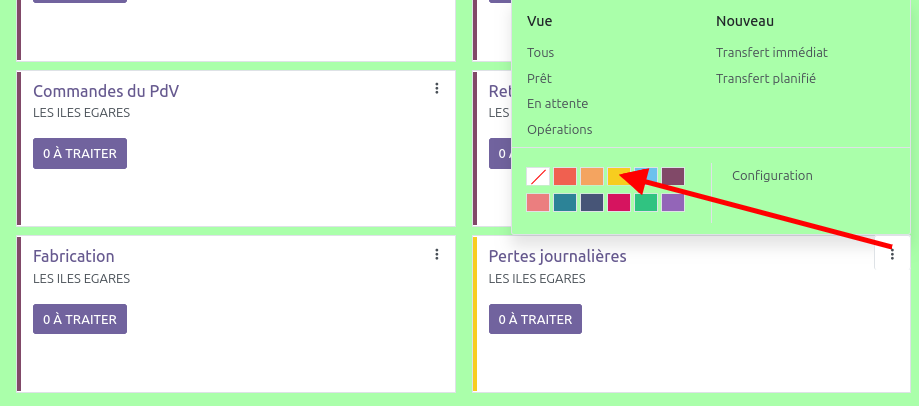 Pour identifier plus facilement les motifs de mouvement de stock qui sont des utilisations internes, nous vous encourageons à choisir un bandeau de couleur :