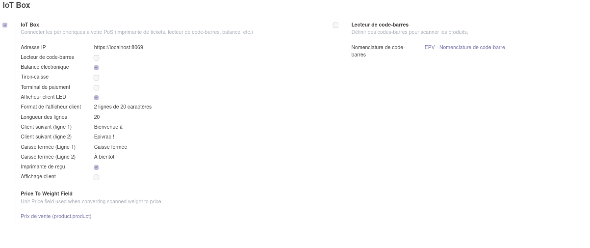 Normalement ça a cette tête là. La coche "Lecteur de code-barres" décochée et à droite, ya une nomenclature même si pas utilisé.