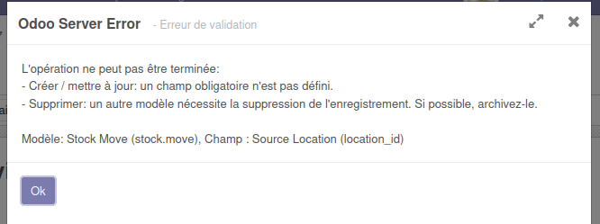 Erreur qui s'affiche au moment de la validation : Il manque le location_id pour le stock.move