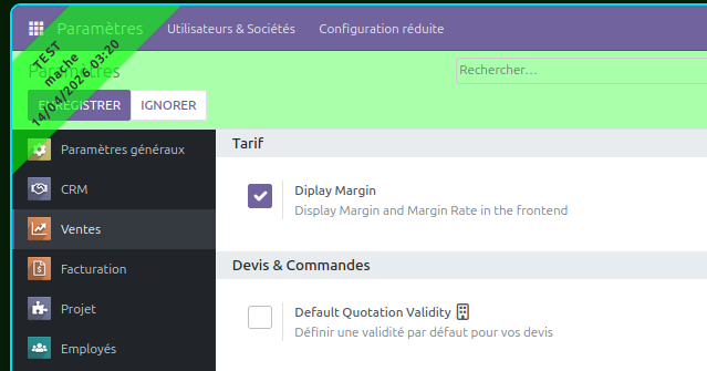 | Gestion de projet | Permet d'afficher et utiliser le module "Projet" |