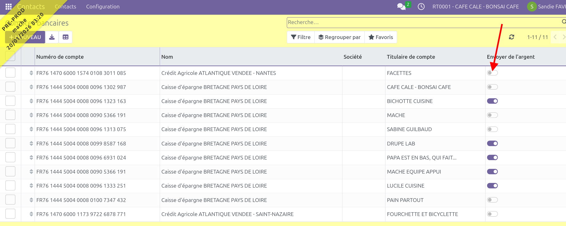 - Dans "Compte bancaire", appelez le compte comptable que vous venez de créer.