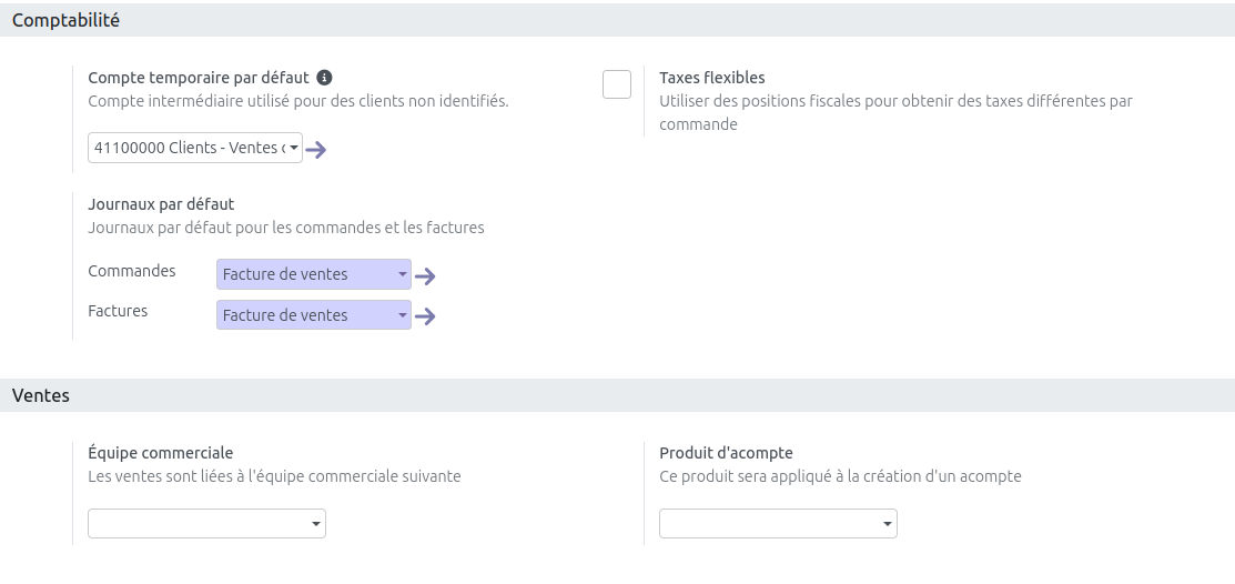 - les autres champs sont des paramétrages avancées qui seront utile le jour où la comptabilité sera faite intégralement dans odoo. Vous pouvez les ignorer pour le moment.
