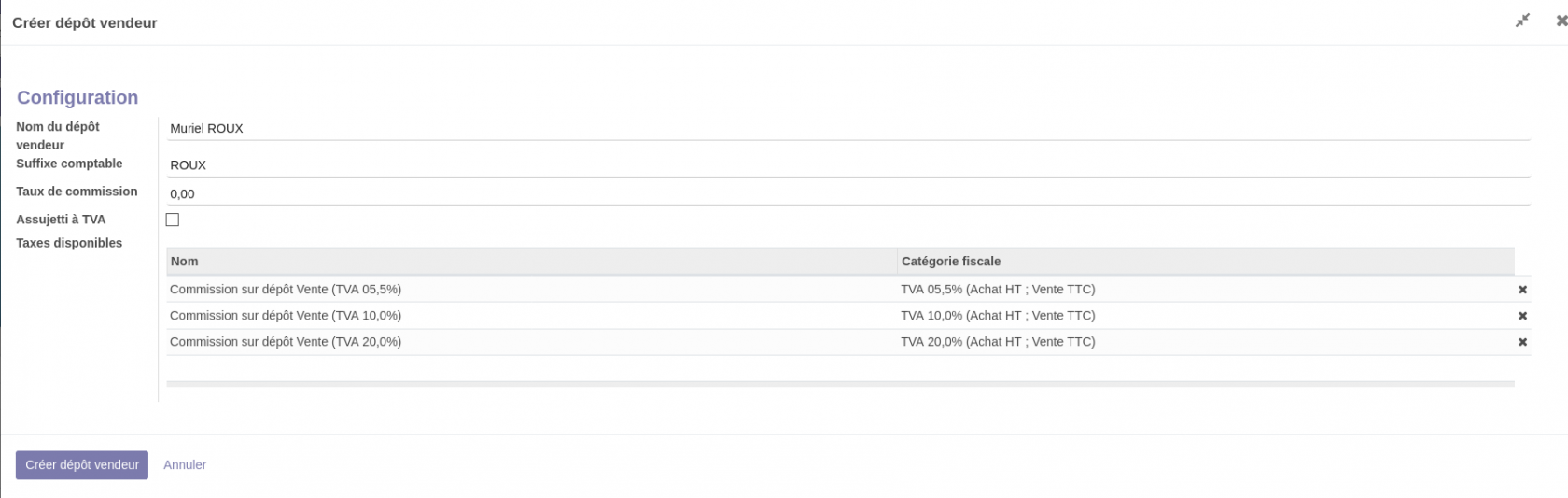 - dans "dépôt vendeur", il sélectionne le client créé précédemment,