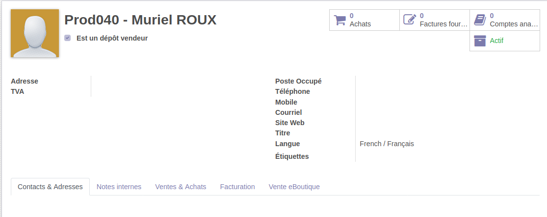 - Créer une fiche contact avec la coche "est un dépôt vendeur", et avec "Prodxx" dans l'intitulé.