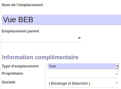 Renommer en trigramme + "Stock" Renommer également l'emplacement parent en "Vue"+ trigramme (qui lui-même ne doit pas avoir d'emplacement parent) :