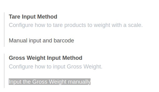 - Sélectionner "Input the Gross Weight manually" dans le champ "Gross Weight Input Method" (sauf si balance connectée) :