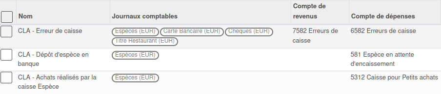 Pour les espèces, c'est la coche "contrôle de caisse" qui fait qu'il y a un décompte du fonds de caisse à l'ouverture et la fermeture.