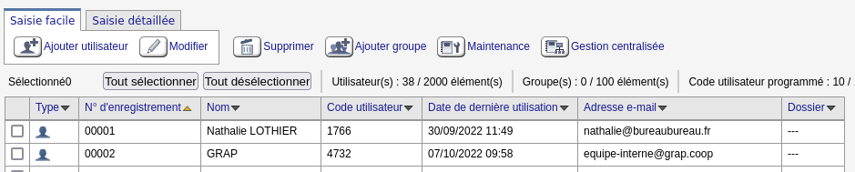 • Gestion de périphérique > carnet d’adresse > ajouter un utilisateur (attention affichage bouton du bas nul : petites flèches en bas à droite pour voir).