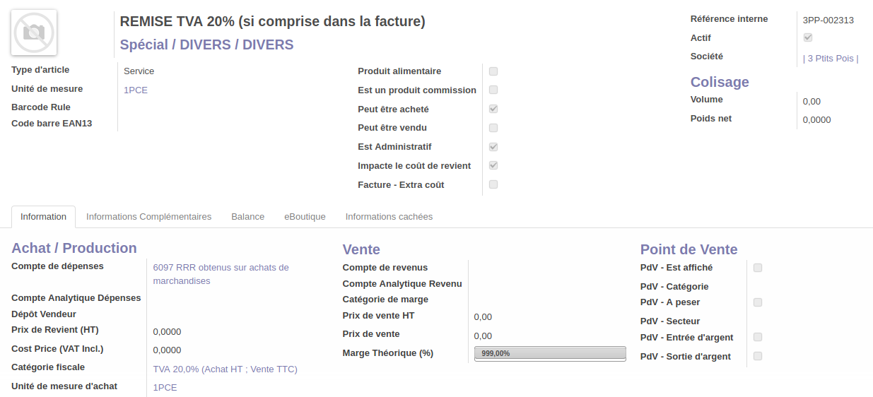 Odoo - Articles spéciaux