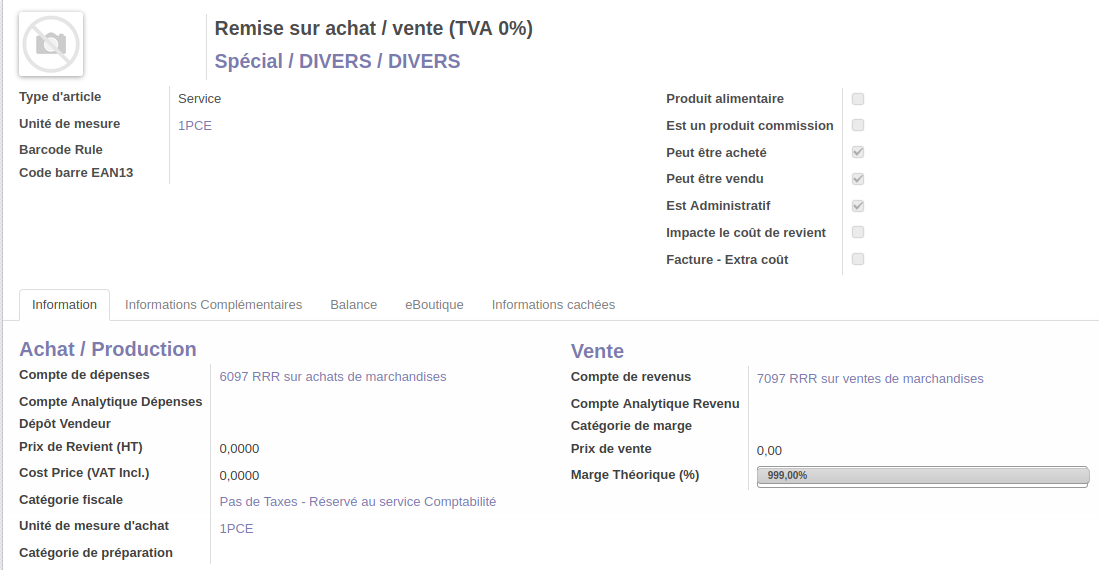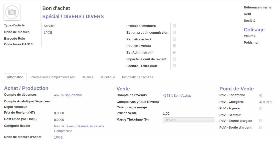 Compte de revenus Gérer comme un article dépôt-vendeur : 467BA Bon d'achat (Parent 46 / Normal / Produits / Actif)