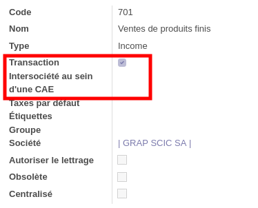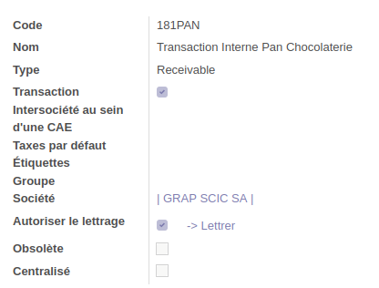 Pour que les transactions fonctionnent bien, il faut également intervenir sur les comptes comptables en jeu (701, 601...) en cochant "Transaction Inter Société : Compte Client / Fournisseur" dans Facturation >> Configuration >> Plan comptable.