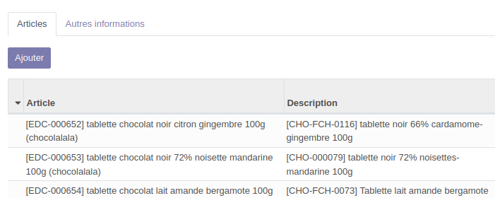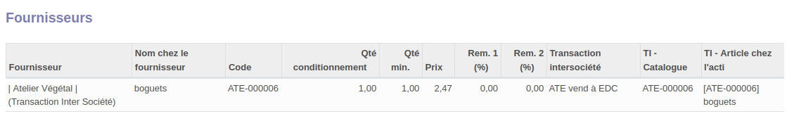 Lorsque l'on ajoute le fournisseur en bas de la fiche article, on accède directement à son catalogue.