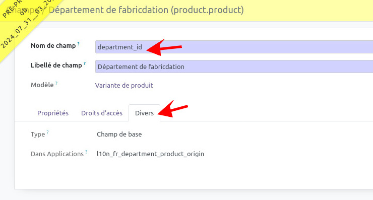 - Aller dans Paramètres > Technique > sous-menu Structure de la base de données > Champs