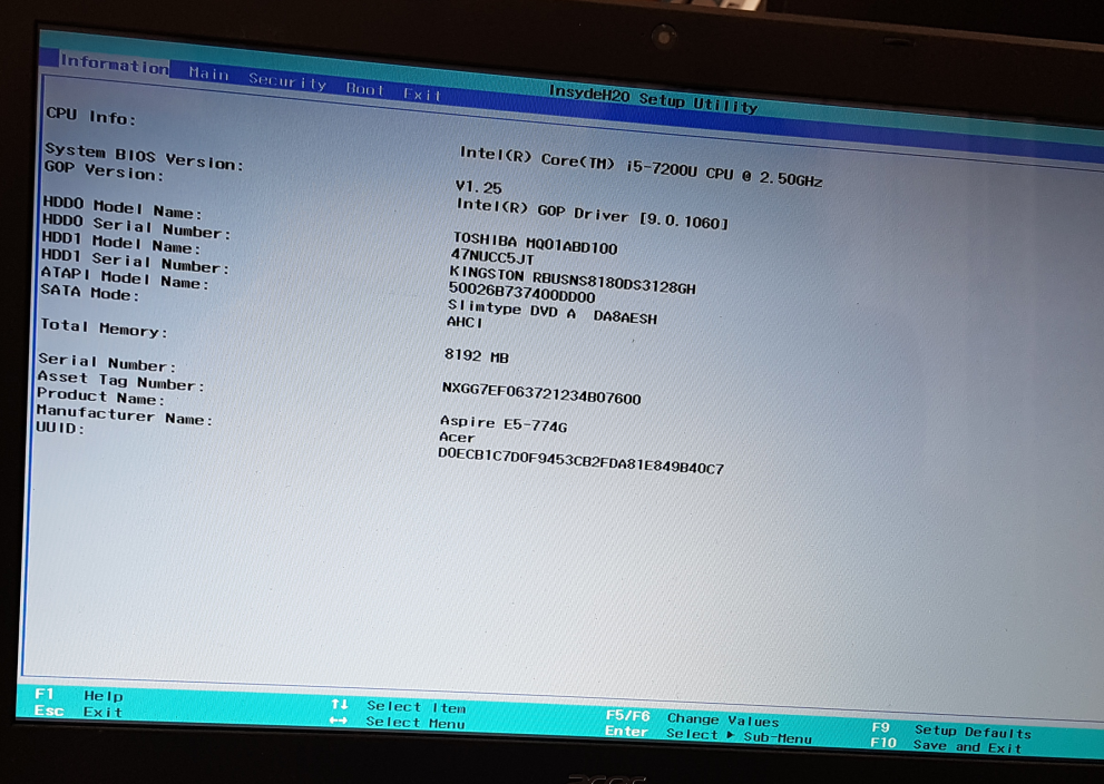 - Allumer l'ordinateur, et lorsque la marque apparaît pendant qu'il charge, trouver LA touche qui permettra d'obtenir le "Bios" : touche echap / F2 / F10 / F12...