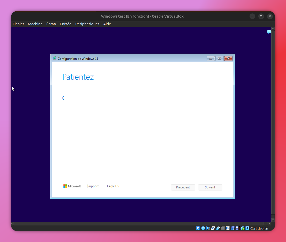 Windows s'installe, on suit les étapes habituelles :