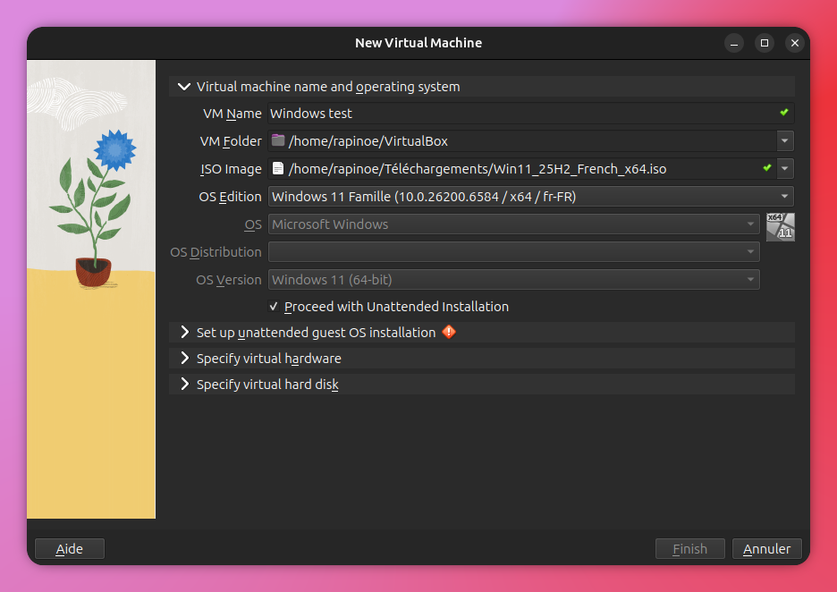 Une fois l'iso téléchargé, on peut lancer l'installation d'une nouvelle machine virtuelle.